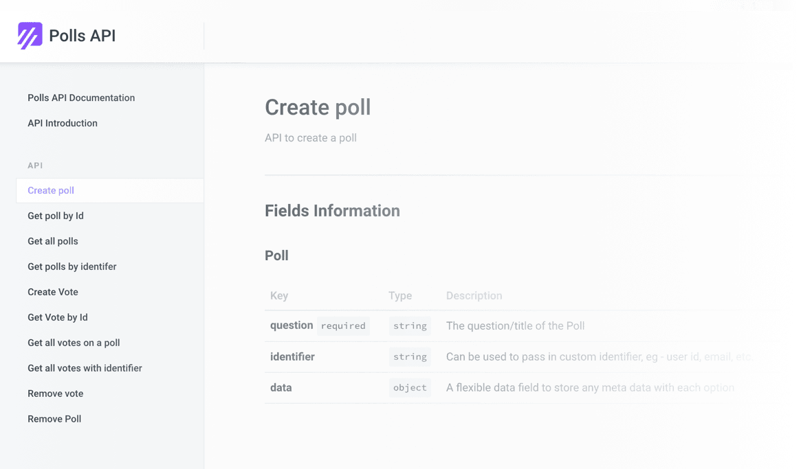 Polls API provides you with a powerful API to add polls to your website or application. Our secure cloud based API scales with your needs.